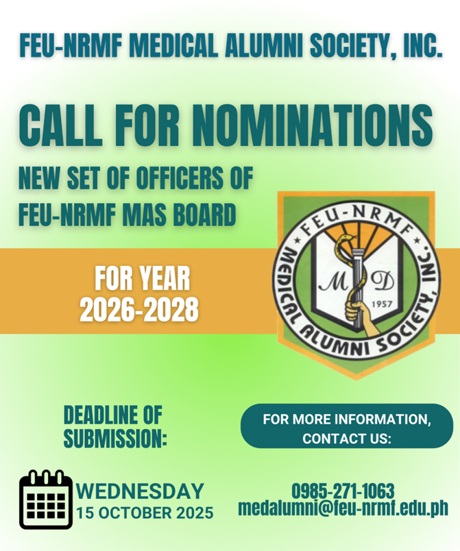 The Committee on Elections (COMELEC) is now accepting nominations for the 14 positions in the Board of Directors of the FEU–NRMF Medical Alumni Society, Inc. for the 2026–2028 term.